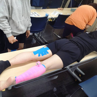 続いて、学んだテーピングの実技を6名づつ、4グループに分かれて実践練習です。